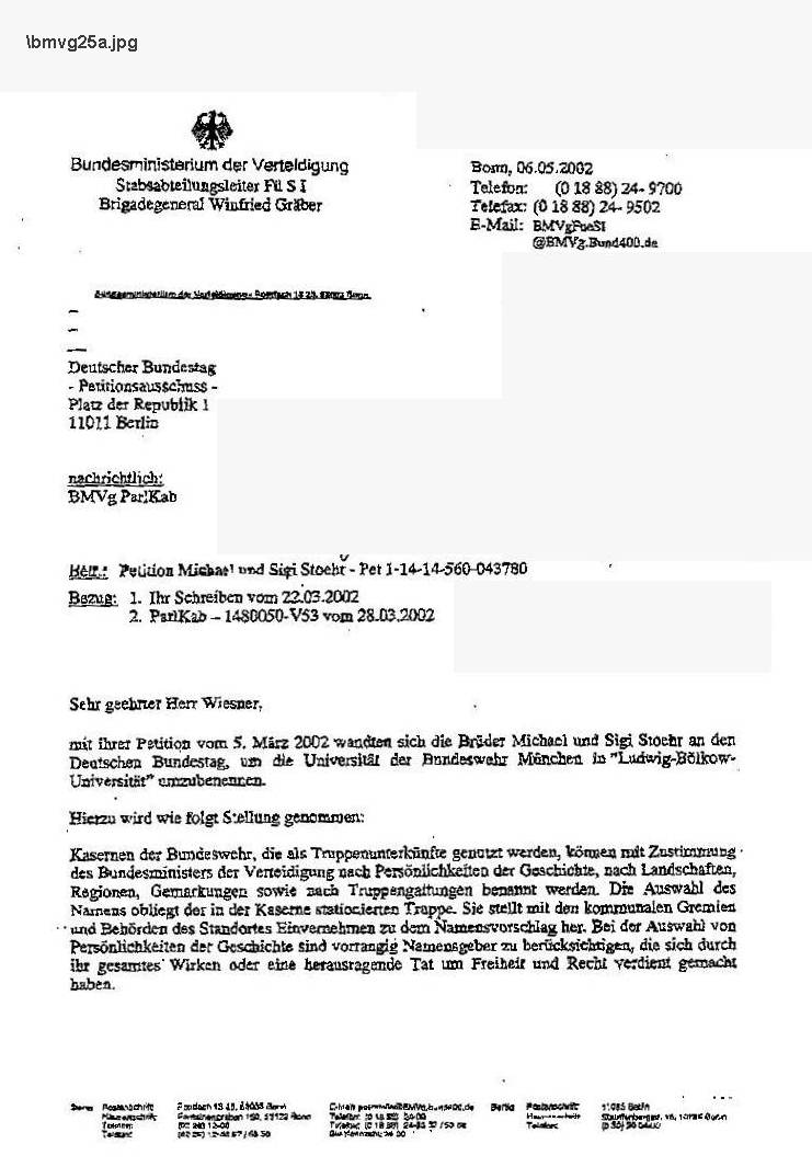 Verteidigungsministeriums zur Umbennung der Bundeswehr-Uni